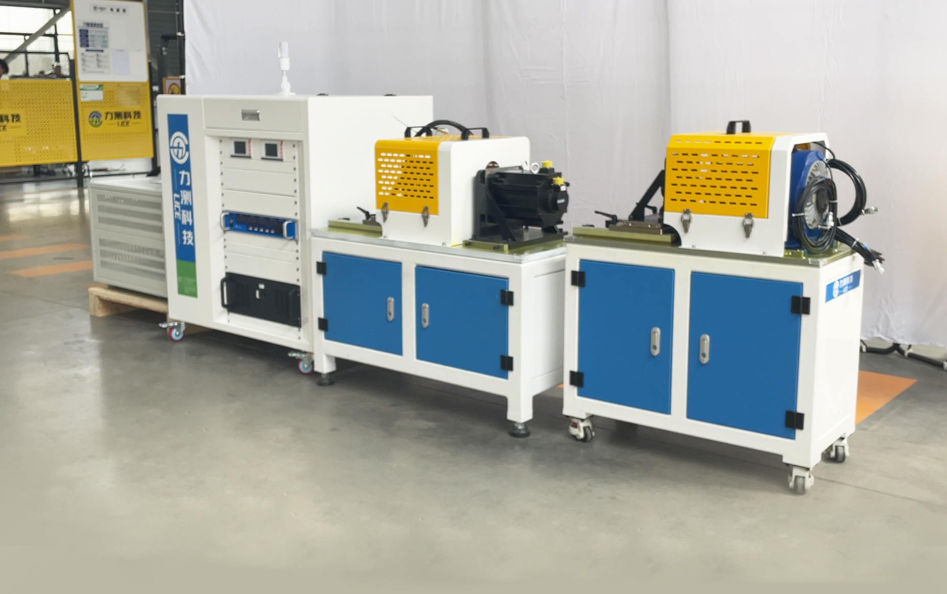 ① 再生电能制动电阻柜 ② 翻盖式控制柜 ③ 机器人关节模组电机对拖测试台 ④ 机器人关节模组电机测试台(磁粉加载)